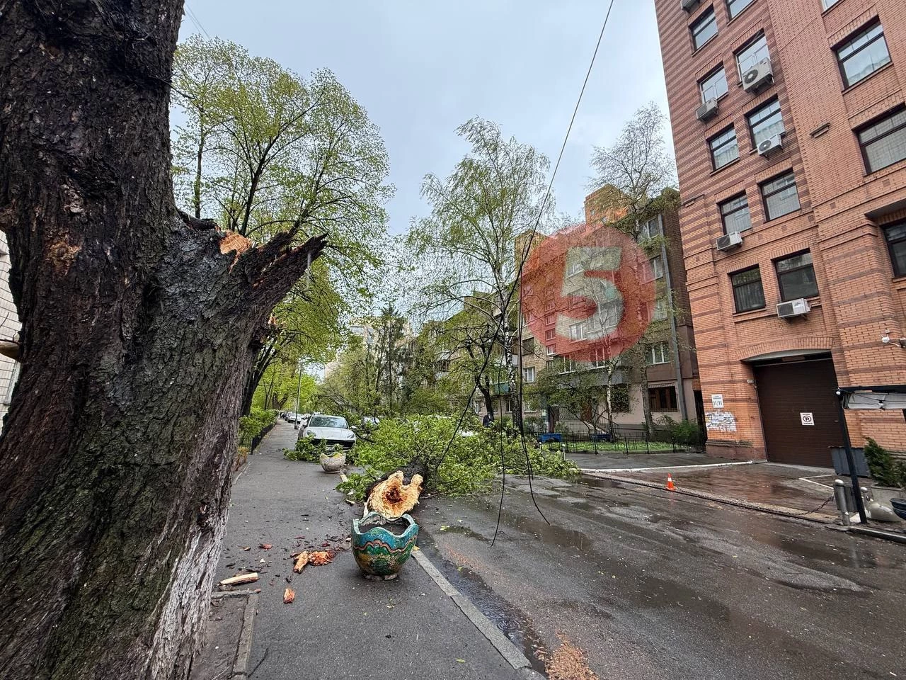 Також пошкоджені лінії електропередачі та припарковані поруч авто.