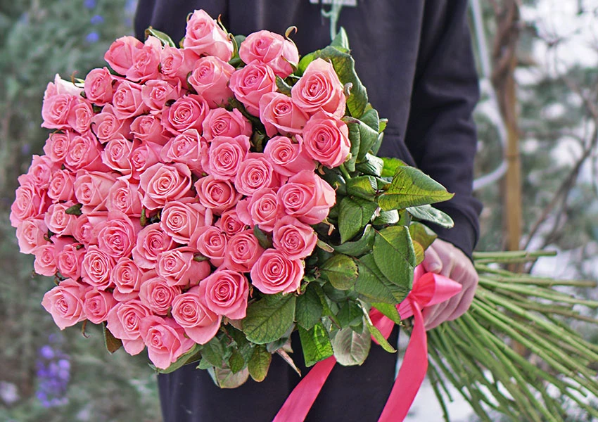 Немає нічого кращого, ніж відчути аромат свіжих квітів у розпал зими. Цього дня особливо актуально виглядають букети зі 101 троянди, вишукані півонії або ніжні весняні тюльпани.