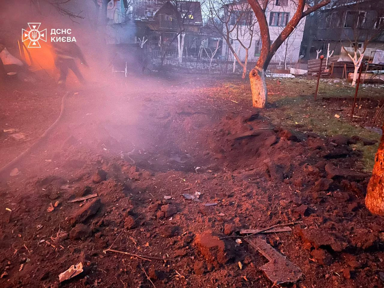 Зокрема, у Голосіївському районі падіння БпЛА спричинило пожежу трьох авто на території СТО. Пожежу ліквідовано.