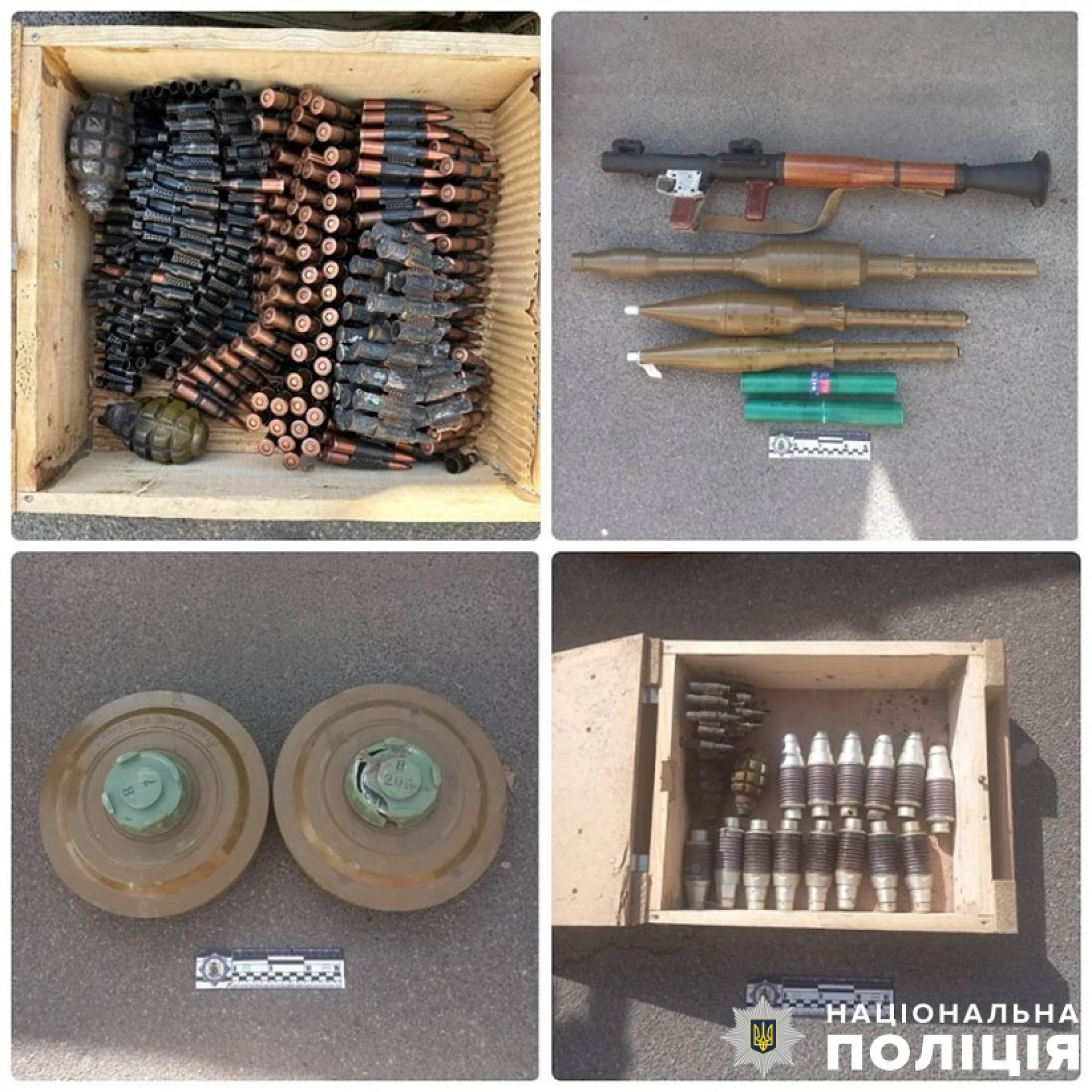 Так, у ході проведення санкціонованих обшуків правоохоронці вилучили з незаконного обігу чималий арсенал: переносний протитанковий комплекс, протитанкові гранати, майже 2500 патронів різного калібру, 9 гранат Ф-1, дві ручні кумулятивні гранати, димову та протитанкову гранату, саморобний вибуховий пристрій, сигнальні міни, димові шашки, ручний протитанковий гранатомет, гранатометні постріли та інше.